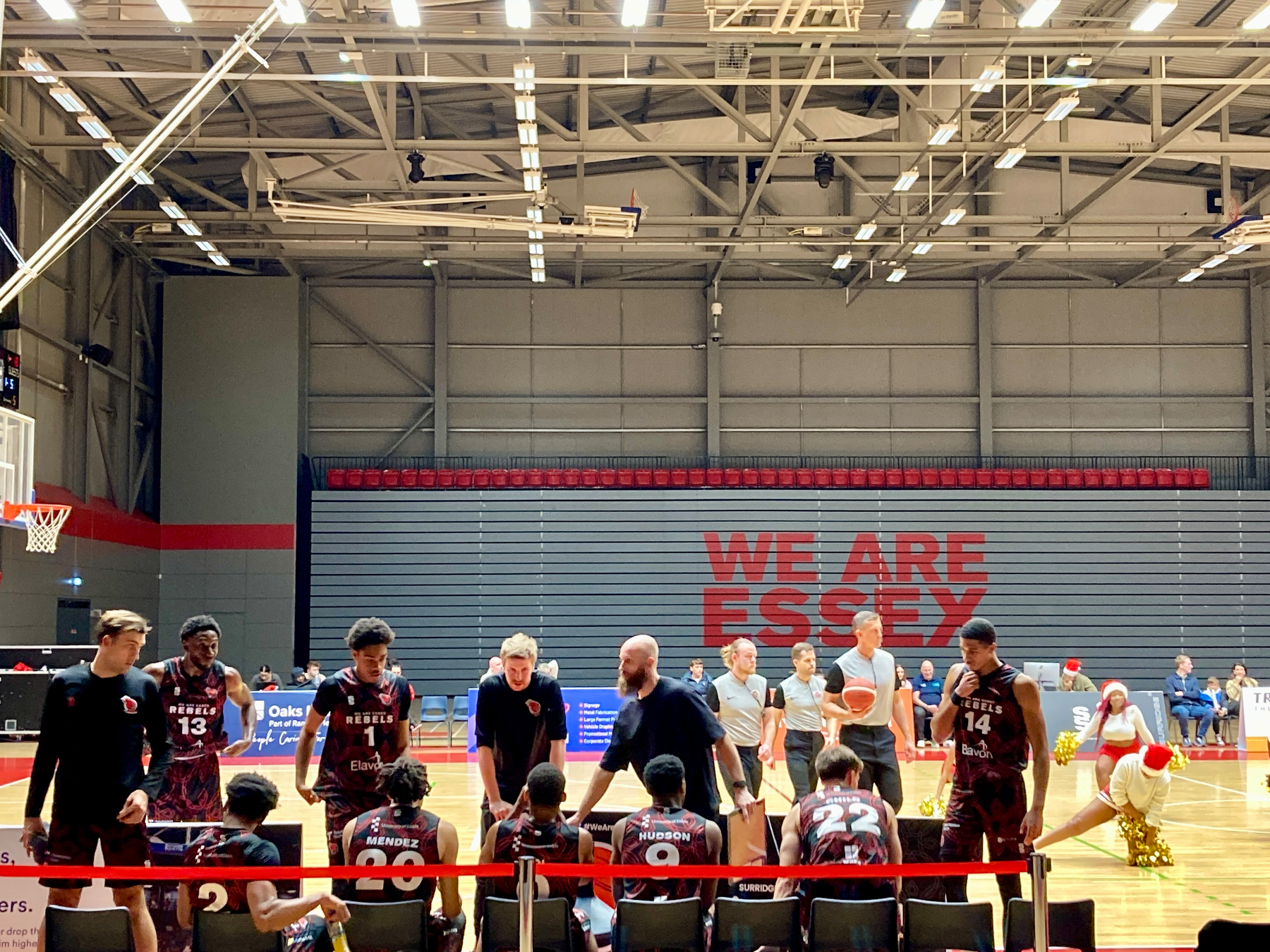 Rebels took a 38-33 lead into the break. It was time for the Christmas Jumper Parade on centre court. I stayed firmly sitting on my seat.