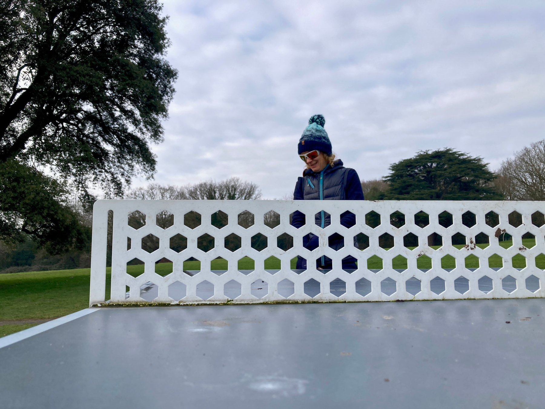 Another wind assisted game at the Table of Dreams. There was no drone action on Monday lunchtime. Instead, we had the almost mechanical sound of a couple of swans flying overhead. Best not to look up. Focus on the game, Jase.