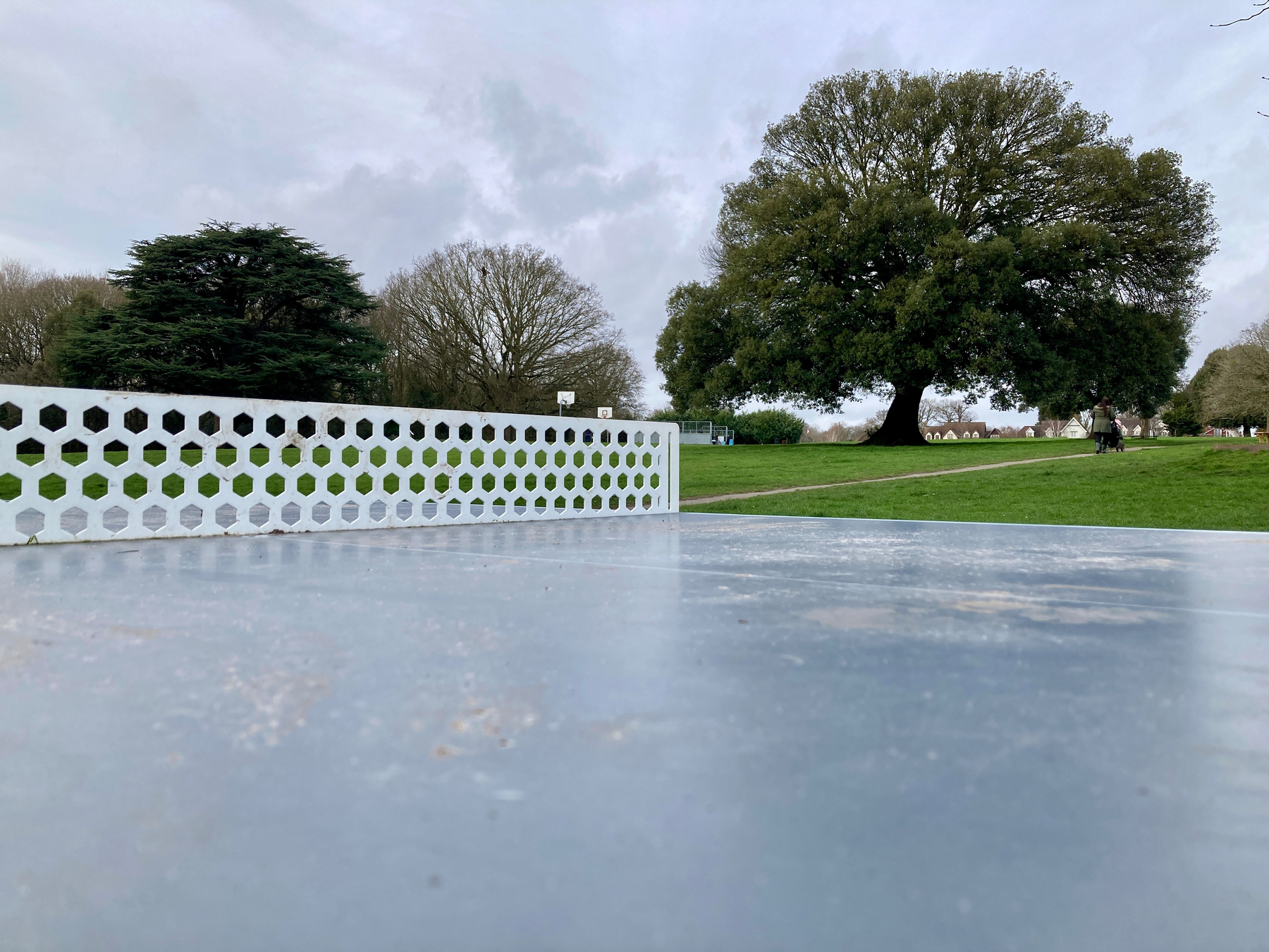 To the Table of Dreams! …on Saturday afternoon. For once, it wasn’t raining. The mud around the foot of each end of the table meant that wellies weren’t required. A layer of clothing was lost. This felt like the first springtime game of table tennis.